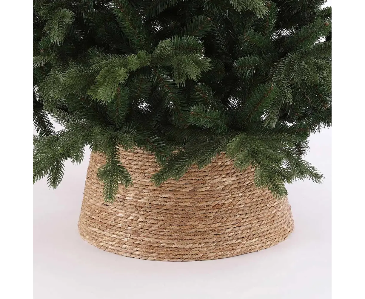 საყრდენი ლამაზად დამალავს ხის ფეხს. ბუნებრივი დიზაინი მოერგება ნებისმიერ ინტერიერს, შეიძლება მისი გამოყენება როგორც ხელოვნური, ასევე ცოცხალი ნაძვის ხეებისთვის.