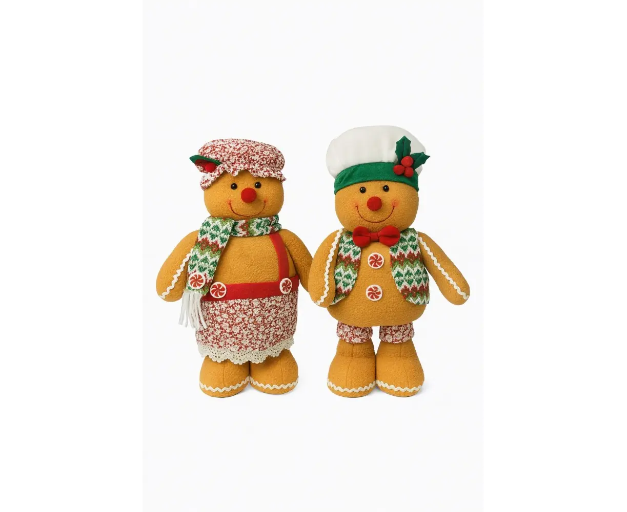 ფიგურა თქვენი საახალწლო დეკორის იდეალური დამატებაა. მუქი ნარინჯისფერი ტონი, ფერადი აქსენტები და ტექსტურიანი ნაჭრის მასალა ქმნის თბილ, მხიარულ და დღესასწაულის განწყობით სავსე ვიზუალს. ფიგურა დეტალურად არის დამუშავებული — შარფი, ქუდი და დეკორატიული ელემენტები მას მიმზიდველსა და სტილურს ხდის.
