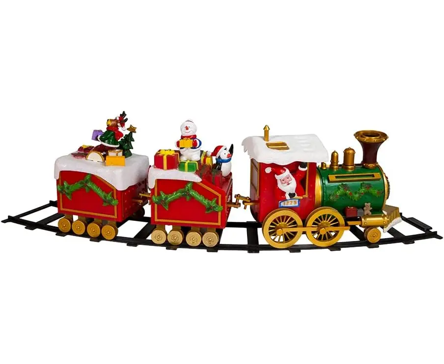 საშობაო მატარებლის ნაკრები, რომელიც მზად არის სადღესასწაულო ხალისისთვის! მატარებელი შედგება კაშკაშა ფერებისაგან, სამგზავრო ვაგონისგან. თითოეული მანქანა მორთულია სადღესასწაულო დეტალებით, როგორიცაა თოვლი, გამწვანება და ლენტები. მატარებელი გადის ლიანდაგების კომპლექტზე, ქმნის დინამიურ და სადღესასწაულო ჩვენებას.