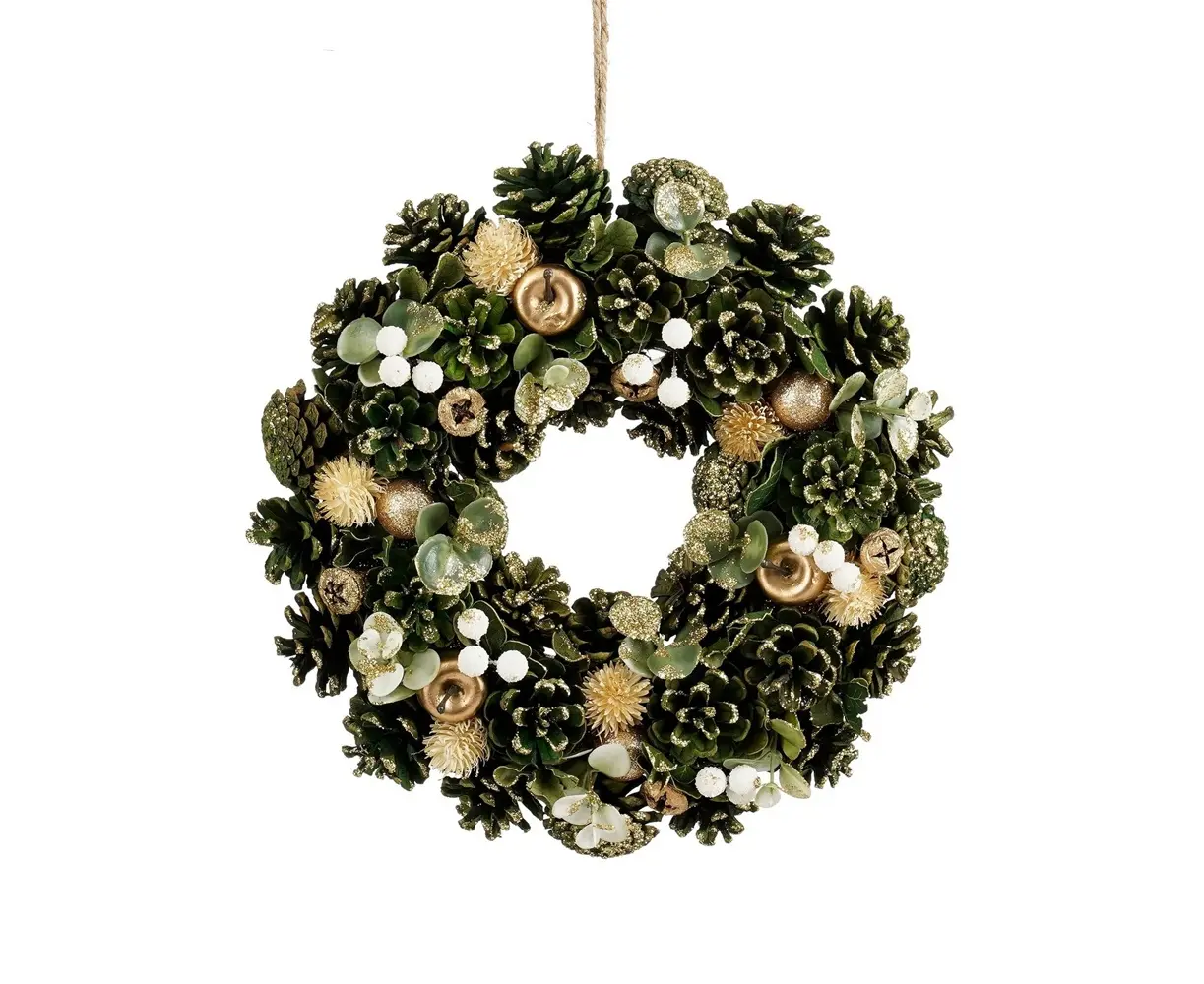 საახალწლო გირლანდა შემატებს თქვენს ინტერიერს მყუდროებასა და ბზინვარებას. მდიდრულად გაფორმებული გირჩებით, ბზინვარე დეტალებითა და თბილი ტონალობის დეკორატიული ელემენტებით, გვირგვინი უზრუნველყოფს ინტენსიურ და თვალისმომჭრელ ეფექტს, რომელიც იდეალურად ერგება როგორც თანამედროვე, ისე კლასიკურ სივრცეს. მსუბუქი კონსტრუქცია და მოსაკიდებელი თოკი საშუალებას გაძლევთ მარტივად განათავსოთ იგი კარზე, კედელზე ან ფანჯრის რაფასთან.