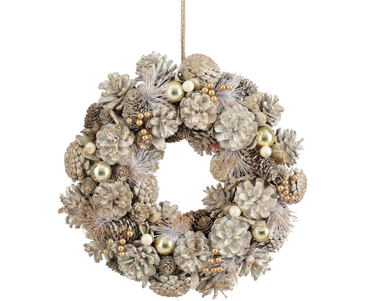 საახალწლო გირლანდა შემატებს თქვენს ინტერიერს მყუდროებასა და ბზინვარებას. მდიდრულად გაფორმებული გირჩებით, ბზინვარე დეტალებითა და თბილი ტონალობის დეკორატიული ელემენტებით, გვირგვინი უზრუნველყოფს ინტენსიურ და თვალისმომჭრელ ეფექტს, რომელიც იდეალურად ერგება როგორც თანამედროვე, ისე კლასიკურ სივრცეს. მსუბუქი კონსტრუქცია და მოსაკიდებელი თოკი საშუალებას გაძლევთ მარტივად განათავსოთ იგი კარზე, კედელზე ან ფანჯრის რაფასთან.