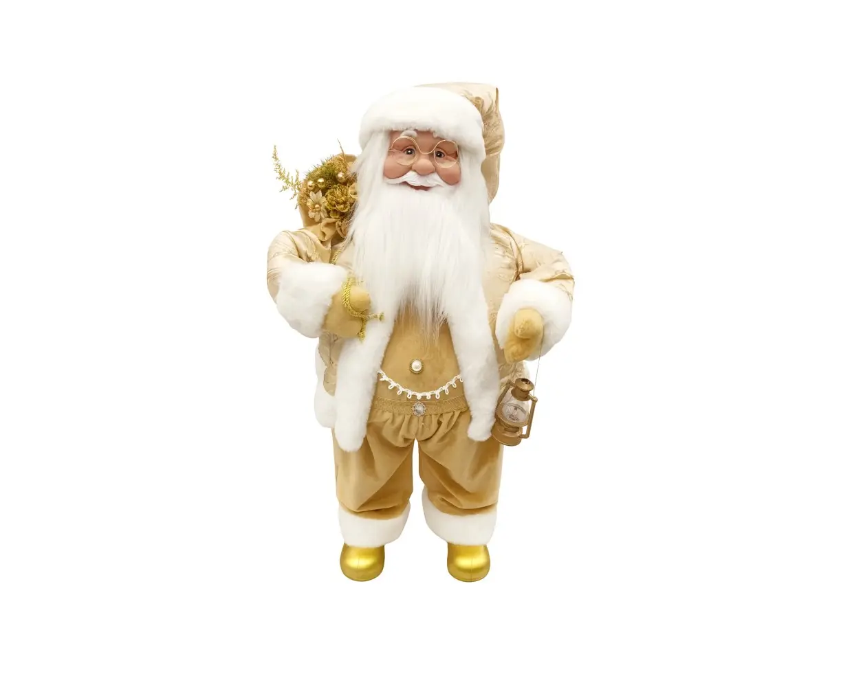 ეს შთამბეჭდავი 90 სმ სიმაღლის თოვლის ბაბუა იდეალური დეკორაციაა როგორც საცხოვრებელი სივრცისთვის, ასევე კომერციული გარემოსთვის. მოყვითალო-ოქროსფერი ტონალობა, ფუმფულა თეთრი ბეწვი და დეტალურად დამუშავებული ქსოვილები ქმნის მდიდრულ და ელეგანტურ ვიზუალს. ხელში აქვს ლამპარი, რომელიც კიდევ უფრო აძლიერებს დღესასწაულის თბილ და მყუდრო ატმოსფეროს. ფიგურა გამოირჩევა მაღალი ხარისხის მასალებით, გამძლე კონსტრუქციითა და რეალისტური სამუშაოებით, რაც მას თქვენს სივრცეში მთავარ, თვალშისაცემ სადღესასწაულო აქცენტად აქცევს. იდეალურია მისაღებში, ჰოლში, მაღაზიის ვიტრინაში ან სხვა ინტერიერის დეკორირებისთვის.
