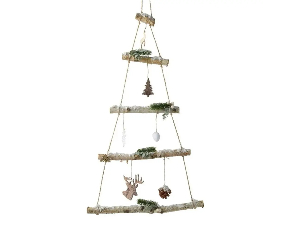 კედლის ნაძვის ხე ბუნებრივი ხის ტოტებითა და ნაზი სადღესასწაულო დეტალებით. იდეალურია პატარა სივრცეებისთვის, კორიდორებისთვის, ოფისებისთვის ან იმ ადგილებისთვის, სადაც ნაძვის ხის დასადგომად ადგილი შეზღუდულია. ასევე შესანიშნავია სამზარეულოს, მისაღების თაროს ან კედლის დეკორად.