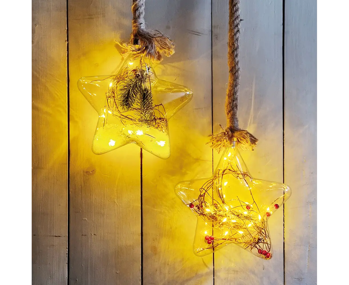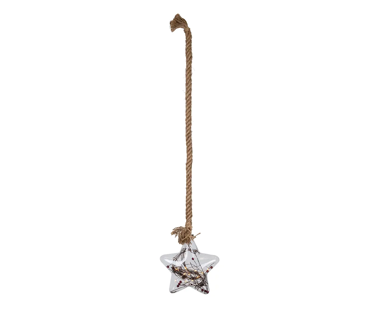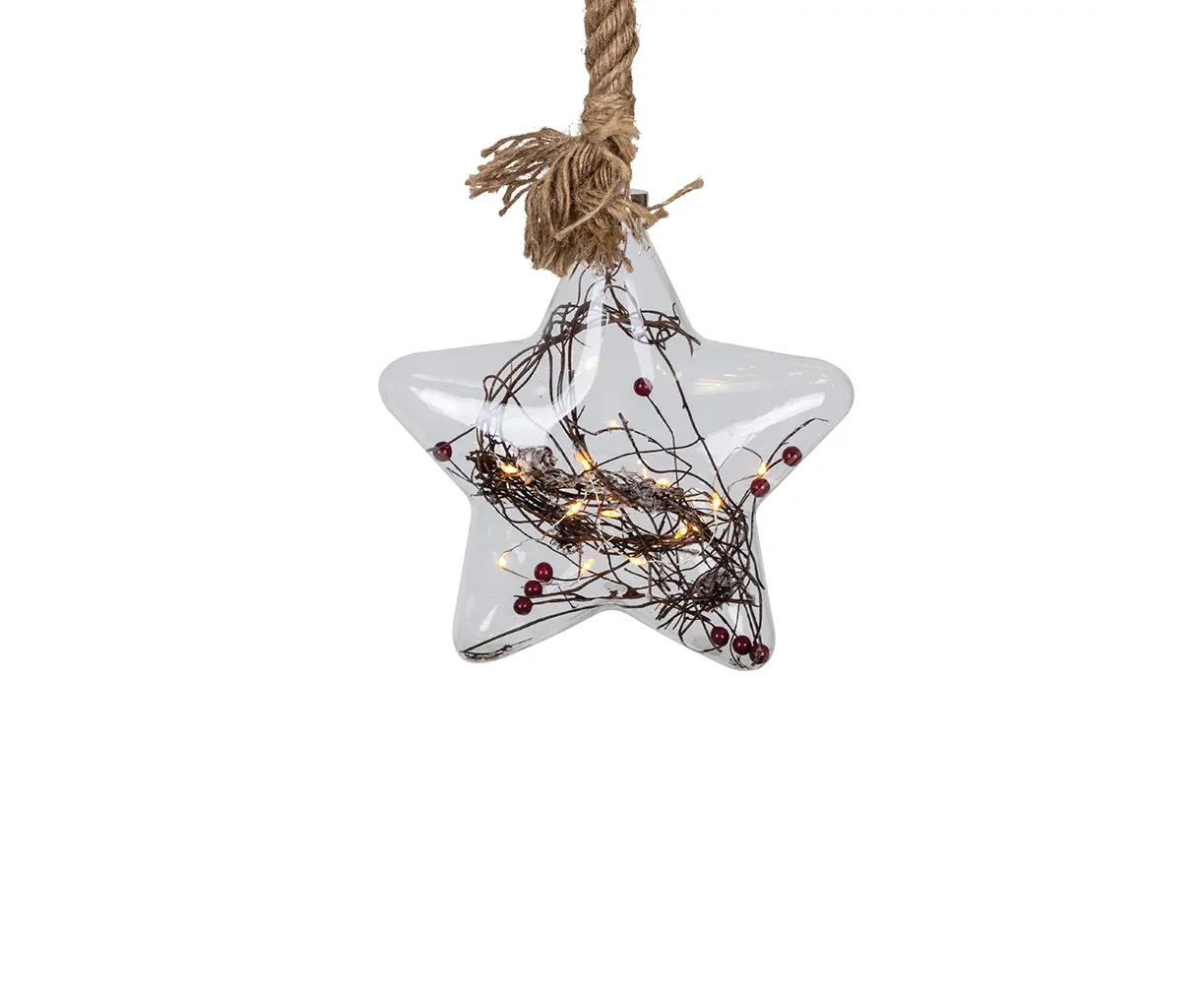 საახალწლო დეკორაცია მინის ვასკვლავი თოკით glass star with berries