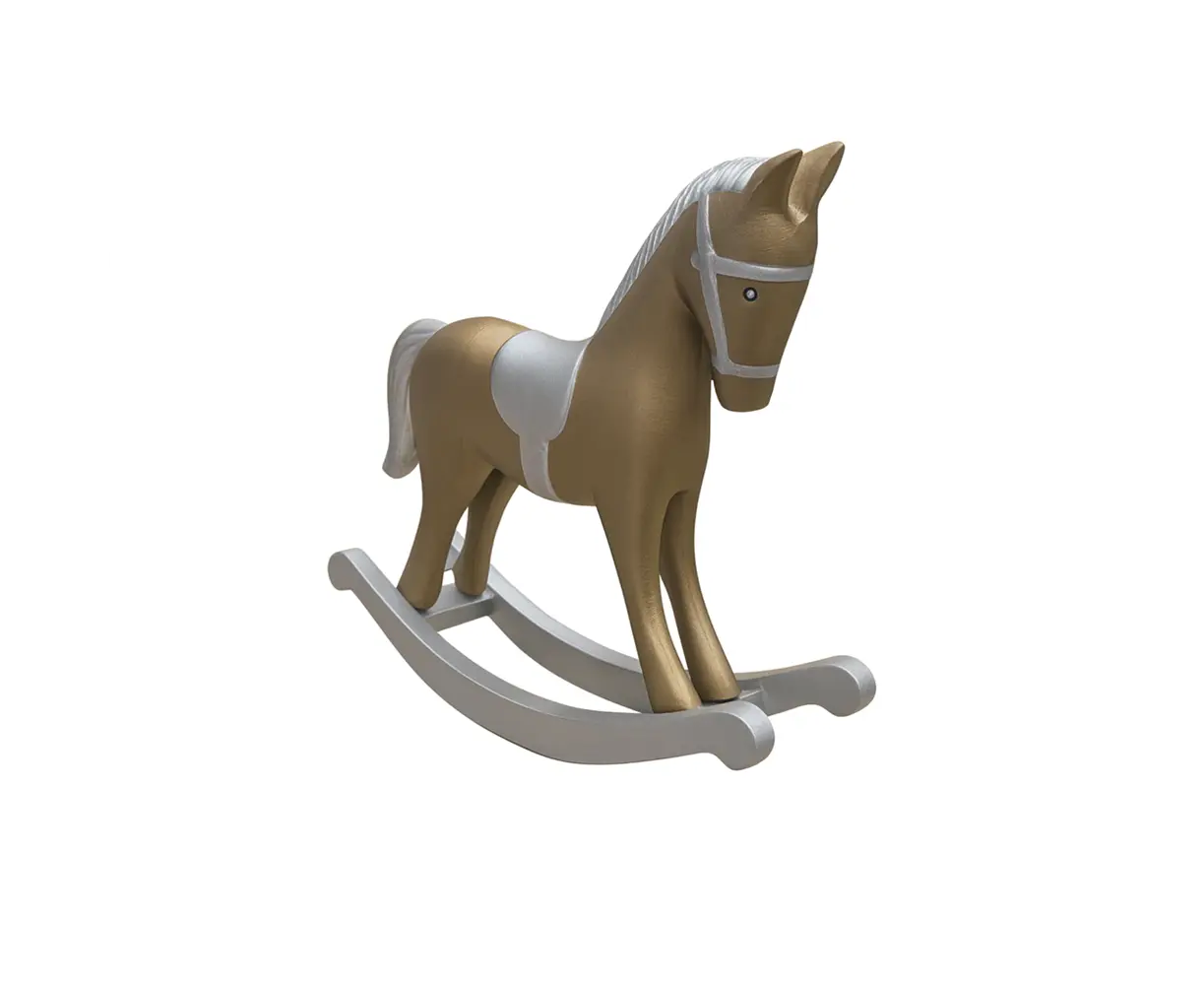 საახალწლო დეკორაცია ცხენი ხის 22 სმ ოქროსფერი