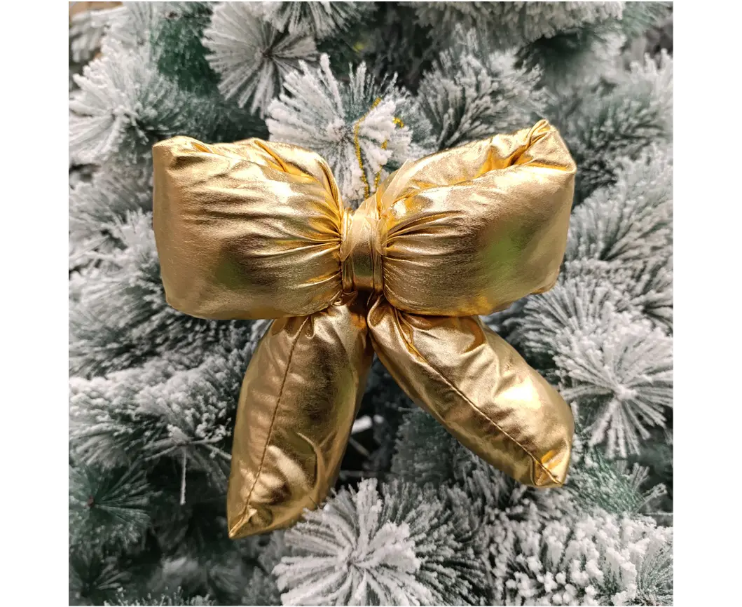 მდიდრული და ბრწყინვალე ოქროსფერი ბაფთა თქვენი საახალწლო დეკორის შეუცვლელი აქცენტია. მისი რბილი, მოცულობითი ფორმა და მეტალური ბზინვარება განსაკუთრებულ ელეგანტურობას სძენს როგორც ნაძვის ხეს, ისე გვირგვინს, კარებს ან საჩუქრის შეფუთვას.