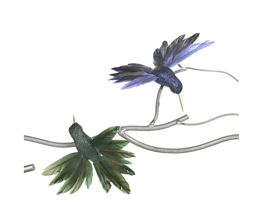მორთულობა საახალწლო ბუზი PLUME FLY HUMMINGBIRD ON CLIP ASS/2 GRN BLU 13სმ