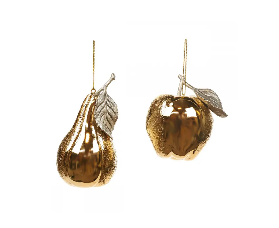 მორთულობა საახალწლო ვაშლი მსხალი METALL APPLE PEAR ORN ASS 2 GLD 11სმ