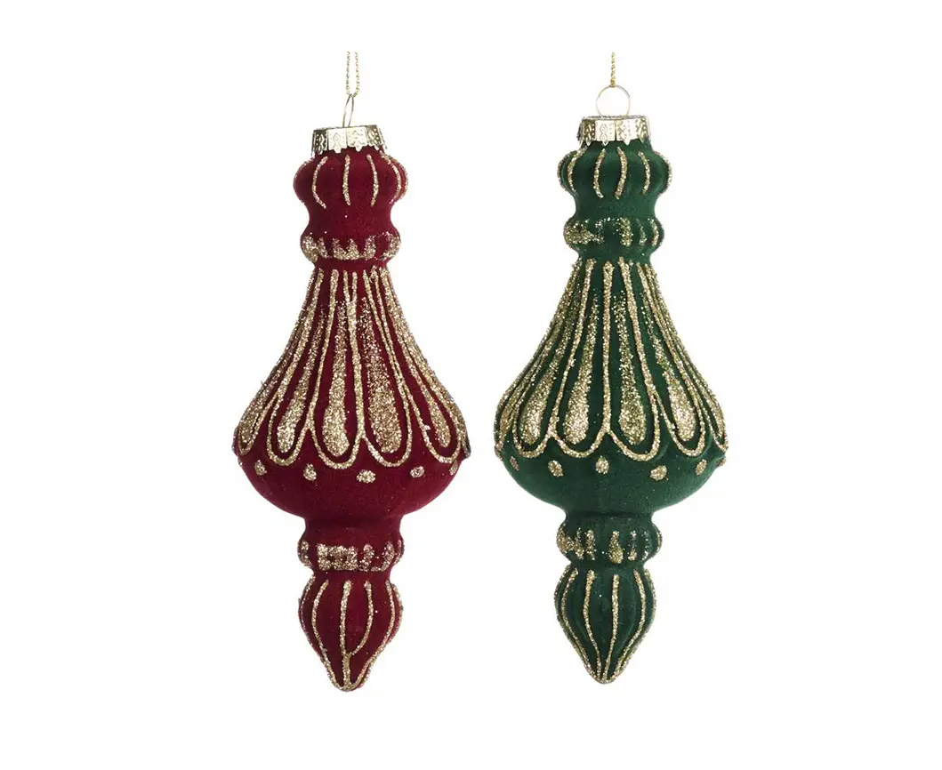 მორთულობა საახალწლო მინა GLSS FLOCK FIN ORN ASS 2 BURG GRN GLD 15სმ