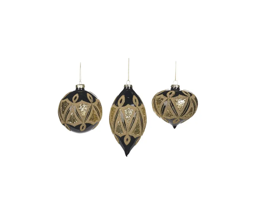 მორთულობა საახალწლო მინის ბურთი GLSS ART DECO BALL FIN ORN ASS 3 BLK GLD 10სმ