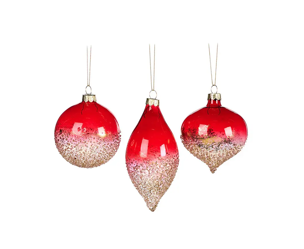 მორთულობა საახალწლო მინის ბურთი GLSS CRUSH BOTTOM BALL FIN ORN ASS 3 BURG GLD 8სმ