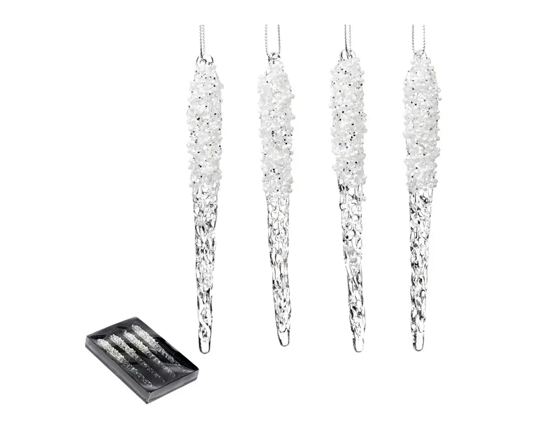 მორთულობა საახალწლო მინის ლოლო GLSS BEAD TOP ICICLE ORN BOX 4 WH CLR 13.5სმ