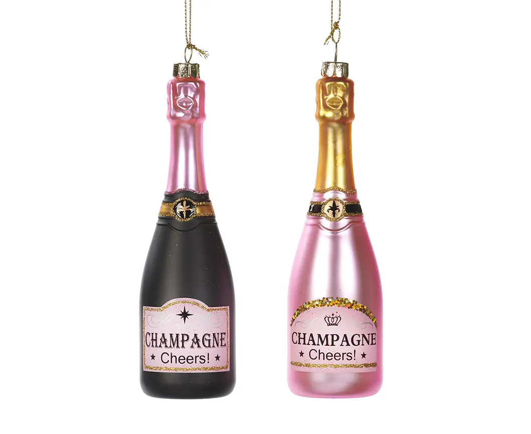 მორთულობა საახალწლო, შამპანურის ბოთლი GLSS CHAMPAGNE BOTTLE ORN ASS 2 BLK PNK 16სმ