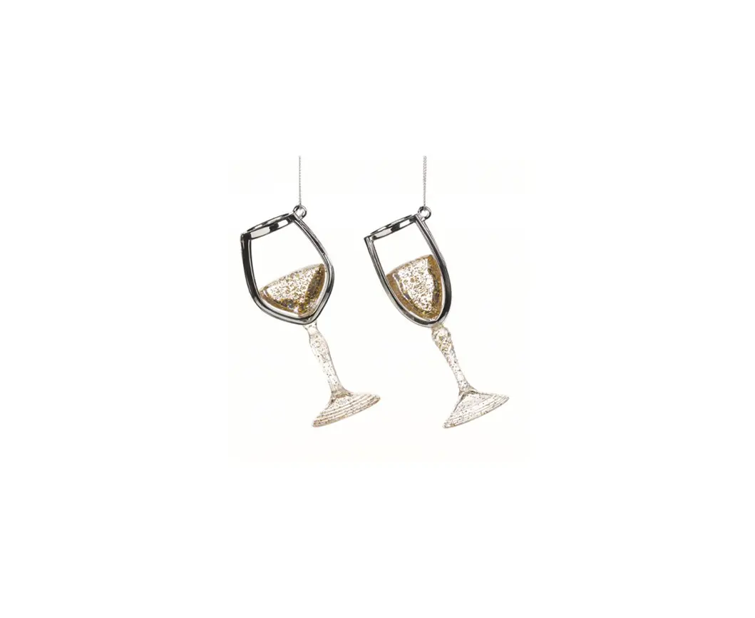 მორთულობა საახალწლო შამპანური ბოკალი CHAMPAGNE WINE GLASS ORN ASS 2 CLR GLD 11.5sm