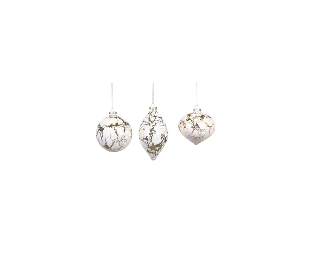 მორთულობა საახალწლო მინის ბურთი GLSS CRACKL BALL FIN ORN ASS 3 WH GLD 10სმ