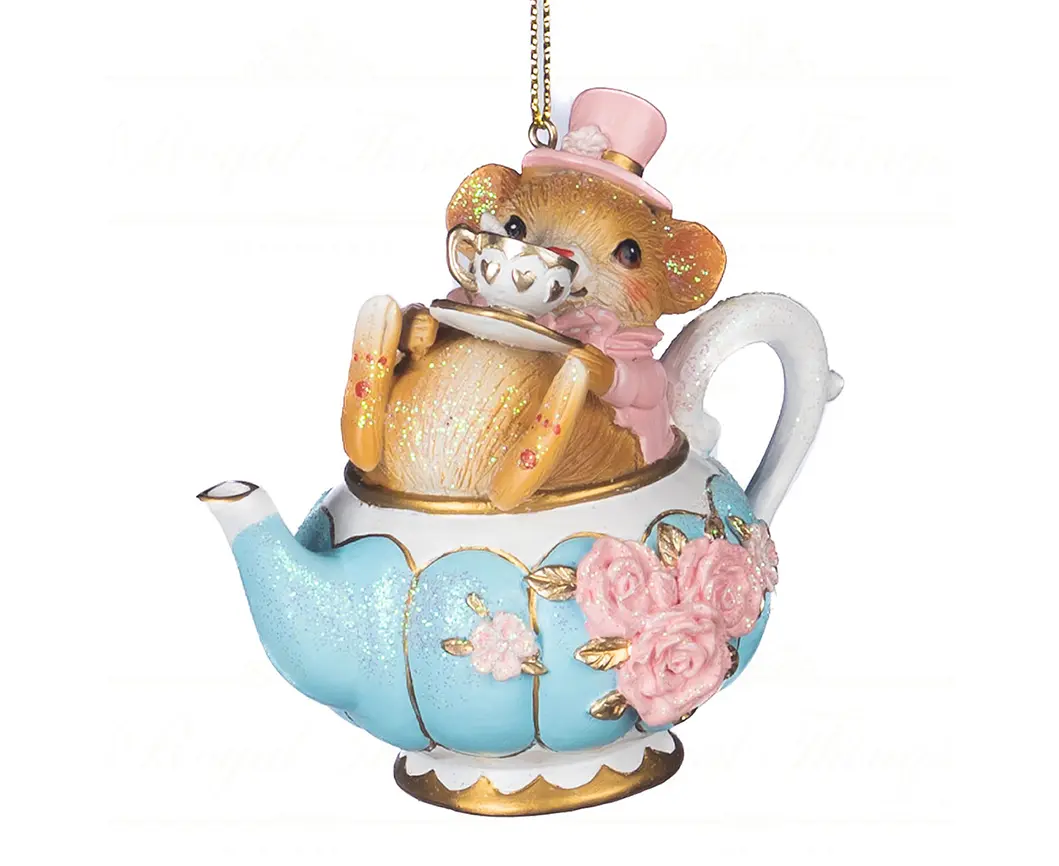 მორთულობა საახალწლო თაგვი ჩაიდანში CANDYLAND MOUSE IN TEAPOT ORN PNK BLU WH 8.5სმ