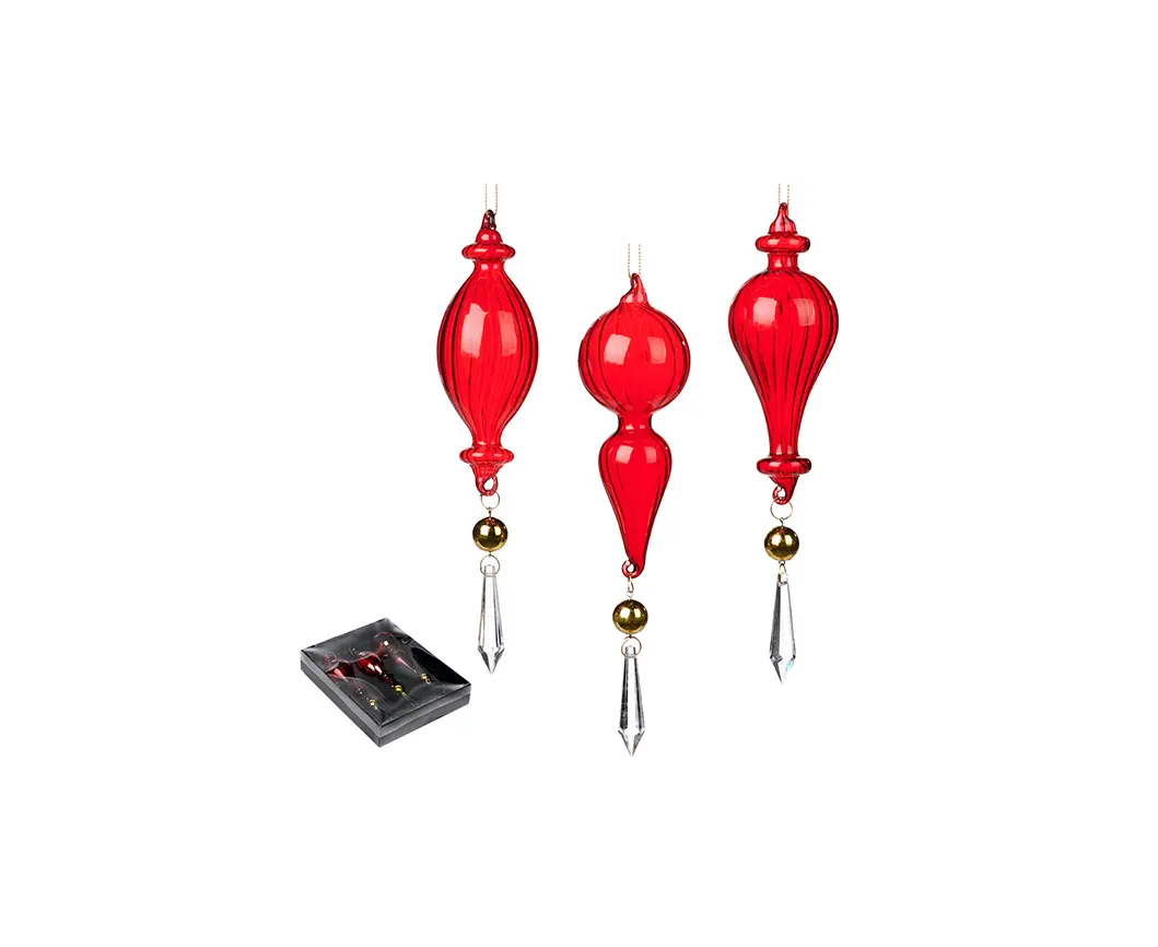 მორთულობა საახალწლო GLSS DANGL CRYST FIN ORN BOX 3 RD 22სმ