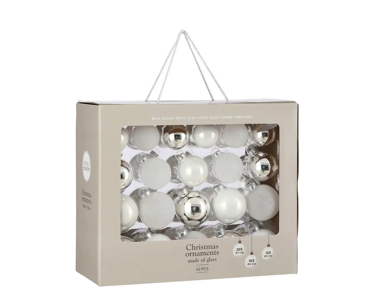 ნაძვის ხის ბურთი მინის 42ც თეთრი