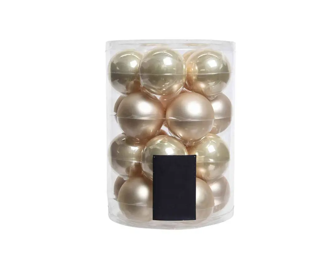 ელეგანტური საახალწლო ბურთების ნაკრები შექმნილია თქვენი ნაძვის ხის ან სადღესასწაულო დეკორის გასაფორმებლად დახვეწილი ბზინვარებით. ოქროსფერი ტონი ქმნის თბილ და მდიდარ ატმოსფეროს, ხოლო მინის ზედაპირი ასახავს შუქს და მატებს სიმსუბუქეს და ელეგანტურობას.