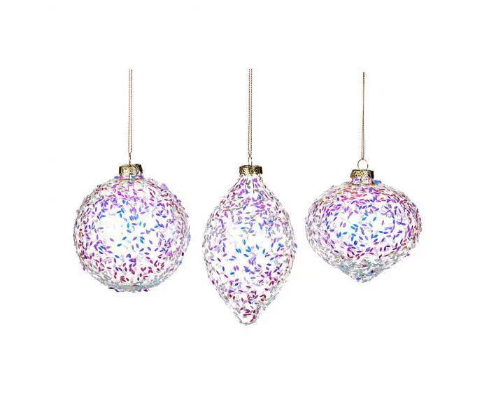 ეს ულამაზესი მინის ნაძვის ხის სათამაშო სამ დახვეწილ დიზაინშია წარმოდგენილი და განსაკუთრებულად ელეგანტურ იერს შესძენს თქვენს საახალწლო დეკორს. იდეალურია როგორც ნაძვის ხის გასაფორმებლად, ისე საახალწლო კომპოზიციებსა და ინტერიერის დეკორად.