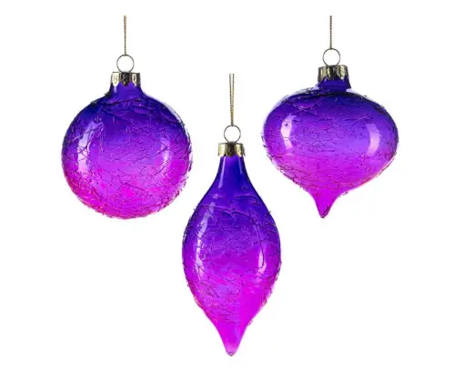 ეს ულამაზესი მინის ნაძვის ხის სათამაშო სამ დახვეწილ დიზაინშია წარმოდგენილი და განსაკუთრებულად ელეგანტურ იერს შესძენს თქვენს საახალწლო დეკორს. იდეალურია როგორც ნაძვის ხის გასაფორმებლად, ისე საახალწლო კომპოზიციებსა და ინტერიერის დეკორად.