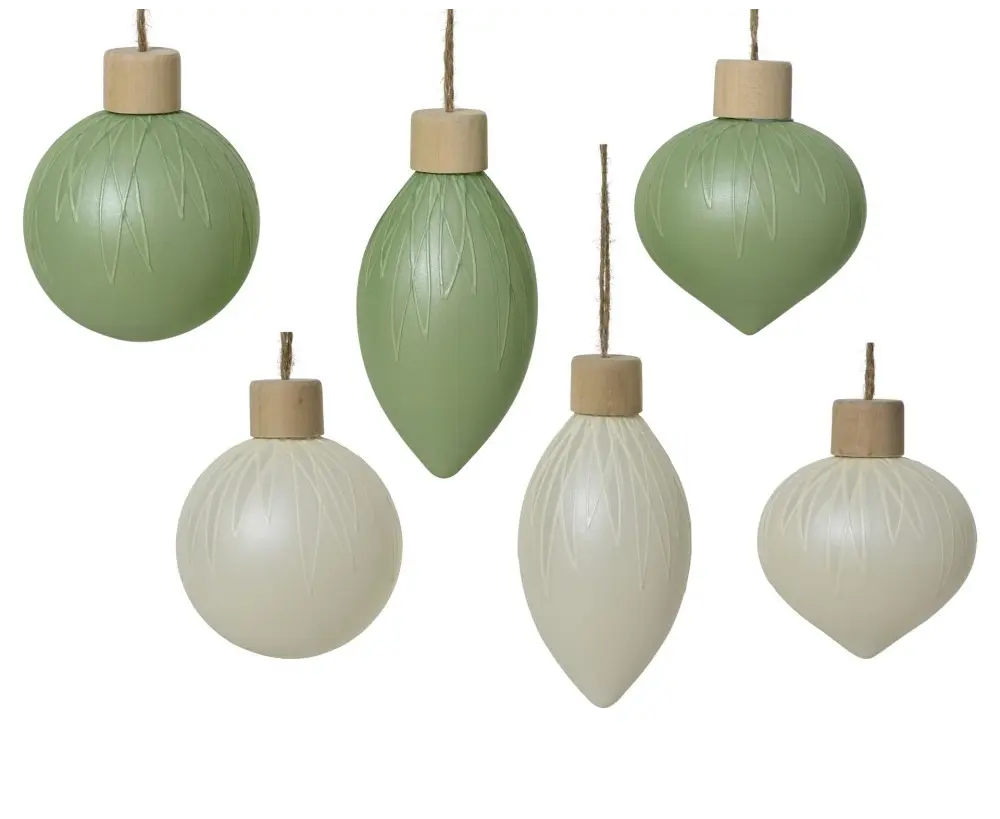 გამოირჩევა მინიმალისტური ელეგანტურობითა და ბუნებრივი ტონებით. პასტელური მწვანე და კრემისფერი ელფერები, ხის ზედა დეტალთან ერთად, ქმნის დახვეწილ, სკანდინავიურ სტილს, რომელიც შესანიშნავად ერწყმის როგორც თანამედროვე, ისე ბუნებრივ დეკორს. ჩამოსაკიდი თოკი დამატებით მატებს ბუნებრივ შეგრძნებას და ამარტივებს განთავსებას ნაძვის ხეზე ან სხვადასხვა სადღესასწაულო კომპოზიციაში.