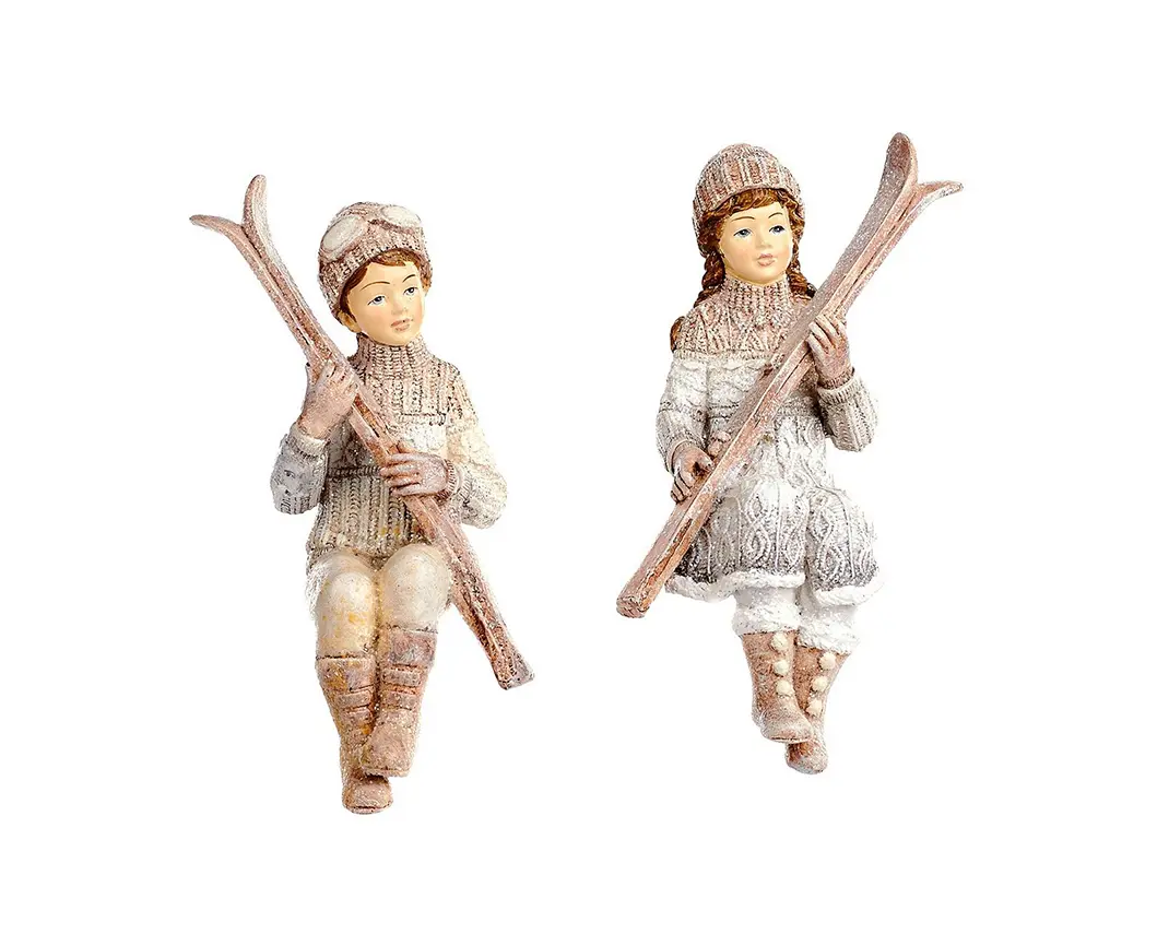 საახალწლო დეკორაცია გოგო ბიჭი თხილამურებით SNOWKID W/SKIS LEDGE SITT TT ASS/2 CRM 19.5სმ