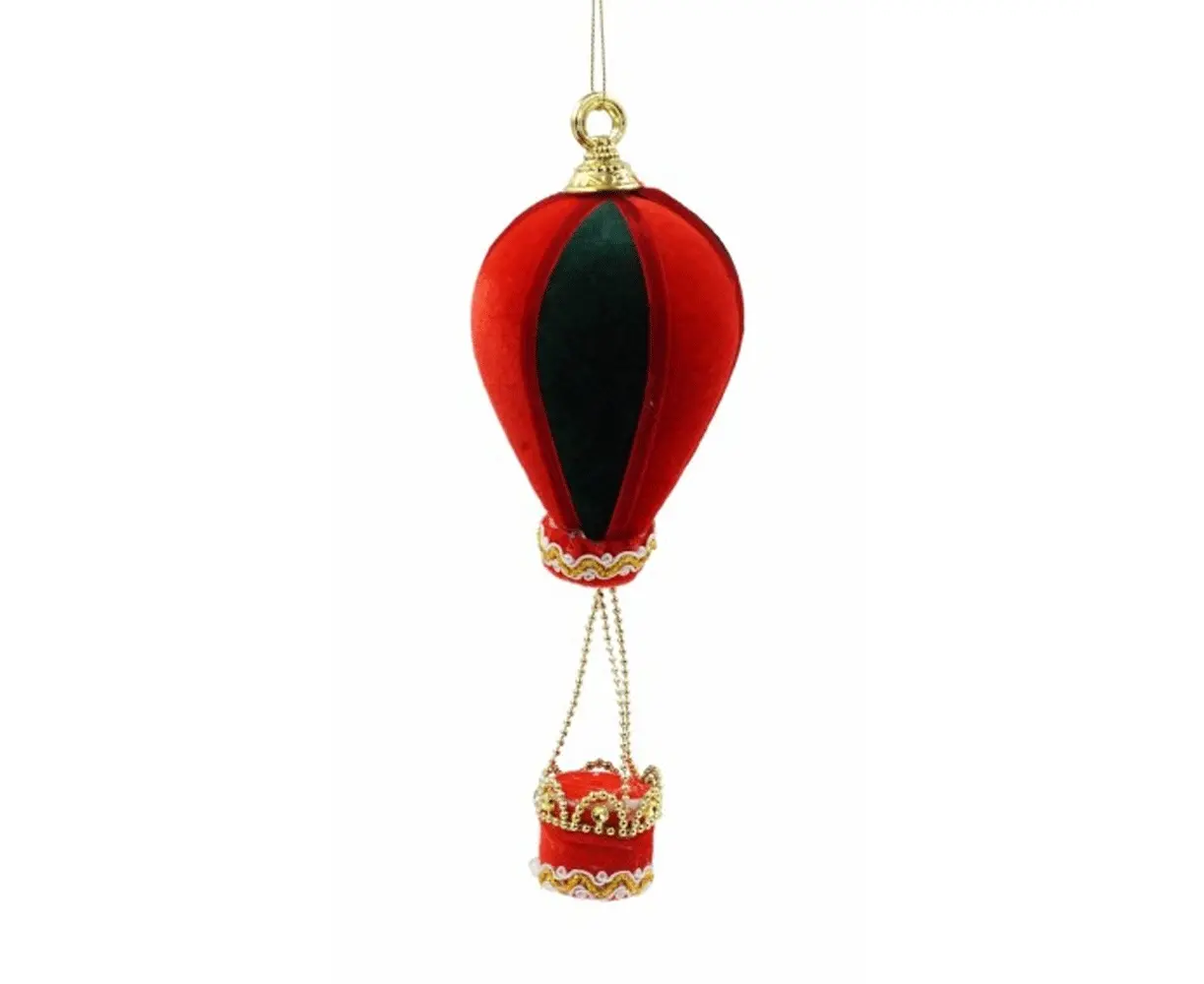 ელეგანტური საახალწლო სათამაშო თბილი წითელ-მწვანე ტონებში, რომელსაც უნიკალური ჰაერის ბუშტის ფორმა აქვს. ველვეტის ეფექტის ზედაპირი და ოქროსფერი დეკორატიული ელემენტები მას მდიდრულ და დღესასწაულურ იერს აძლევს. მსუბუქი კონსტრუქცია მარტივად ეკიდება ნაძვის ხის ტოტებზე და შესანიშნავად ავსებს კლასიკურ ან თემატურ დეკორაციებს.