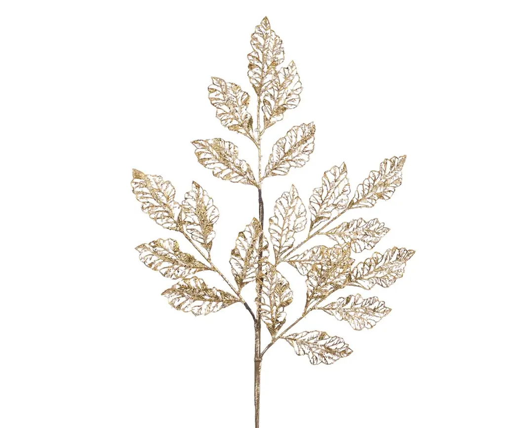 საახალწლო დეკორაცია METALL PEARL OPEN LEAF STEM GLD 67სმ