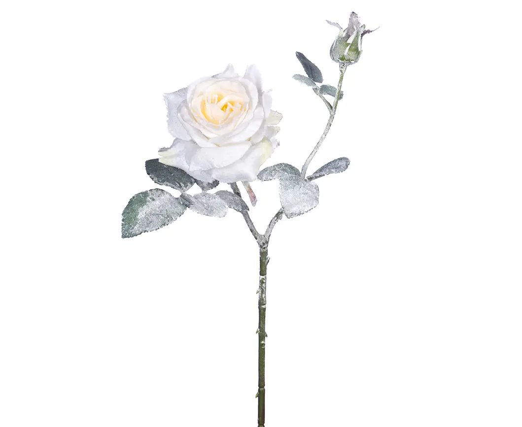 საახალწლო დეკორაცია SNOW ROSE FLOWER STEM WH 66სმ