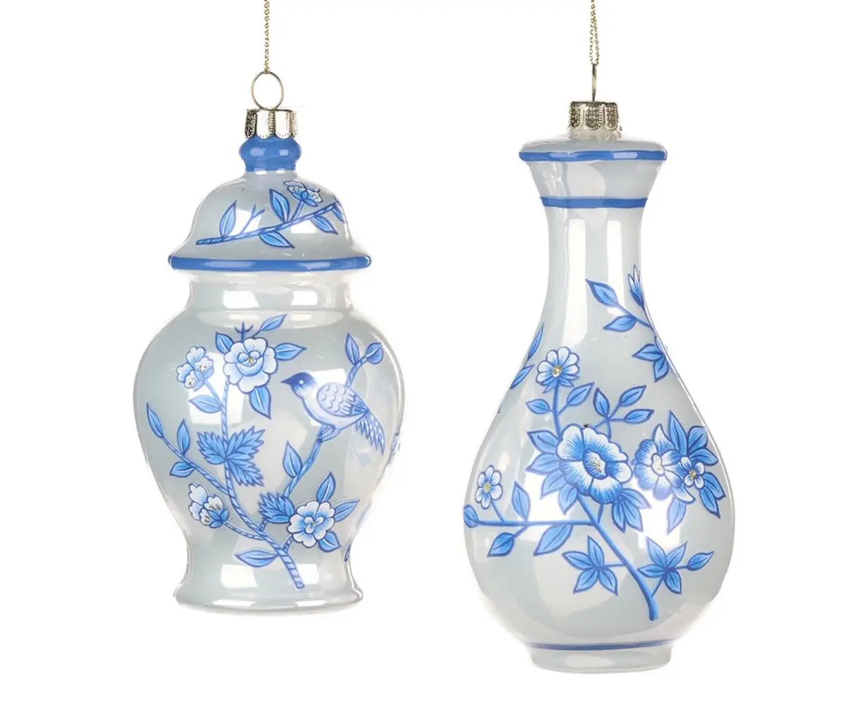 ჩინურ სტილში შესრულებული საშობაო დეკორი შექმნის თქვენს სახლში საახალწლო განწყობას. ნაზი ლურჯი ყვავილოვანი მოტივები თეთრ ფონზე დაამშვიდებს თვალს და შექმნის ჰარმონიის განცდას. ლარნაკები აღჭურვილია მყარი საკიდებით, რაც გაამარტივებს მათ დაფიქსირებას ნაძვის ხეზე ან ინტერიერის სხვა ელემენტზე. შესანიშნავი საჩუქარია თქვენთვის და თქვენი ახლობლებისთვის!