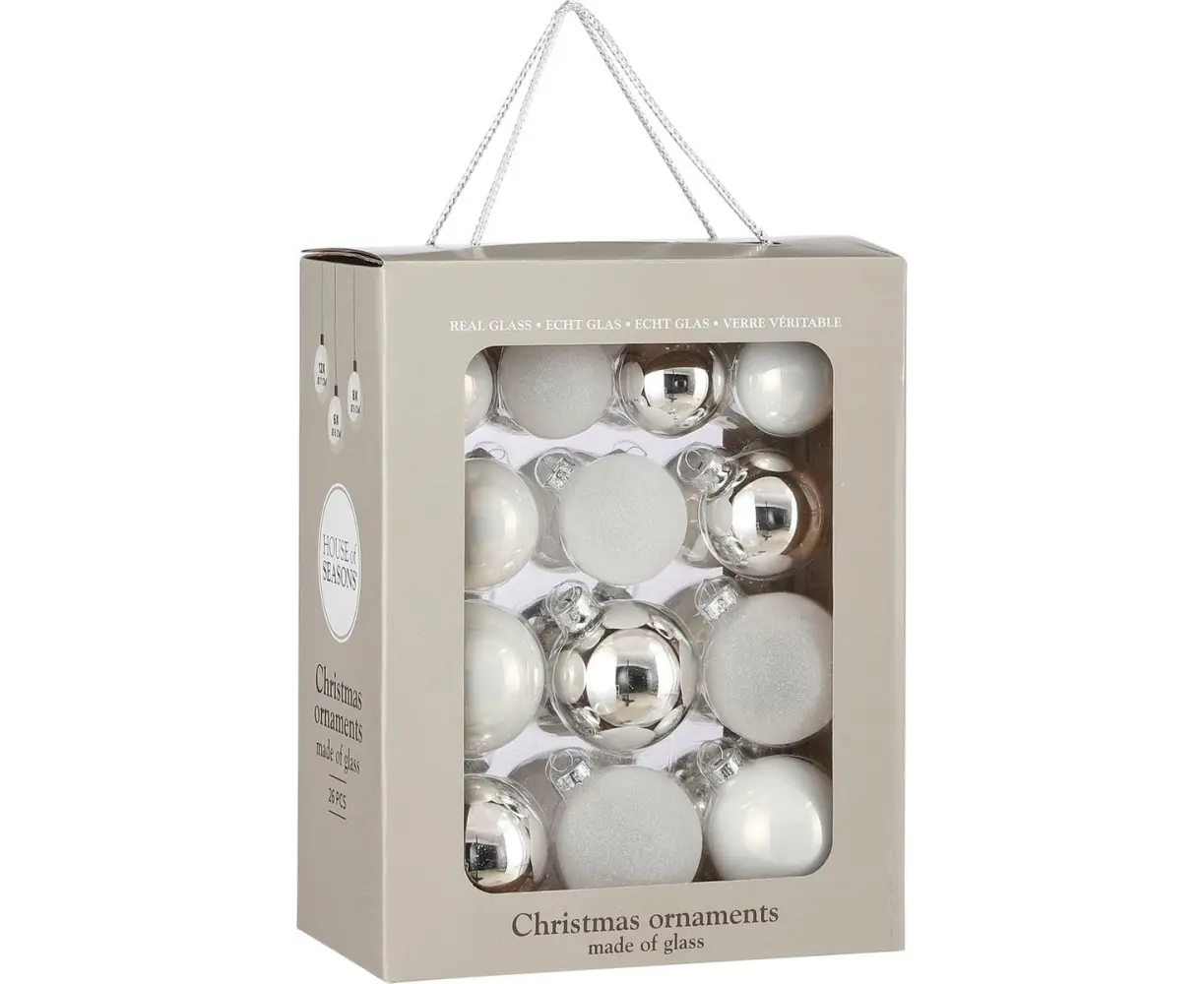 საახალწლო მორთულობა მინის ბურთი თეთრი 7 სმ 26 ც