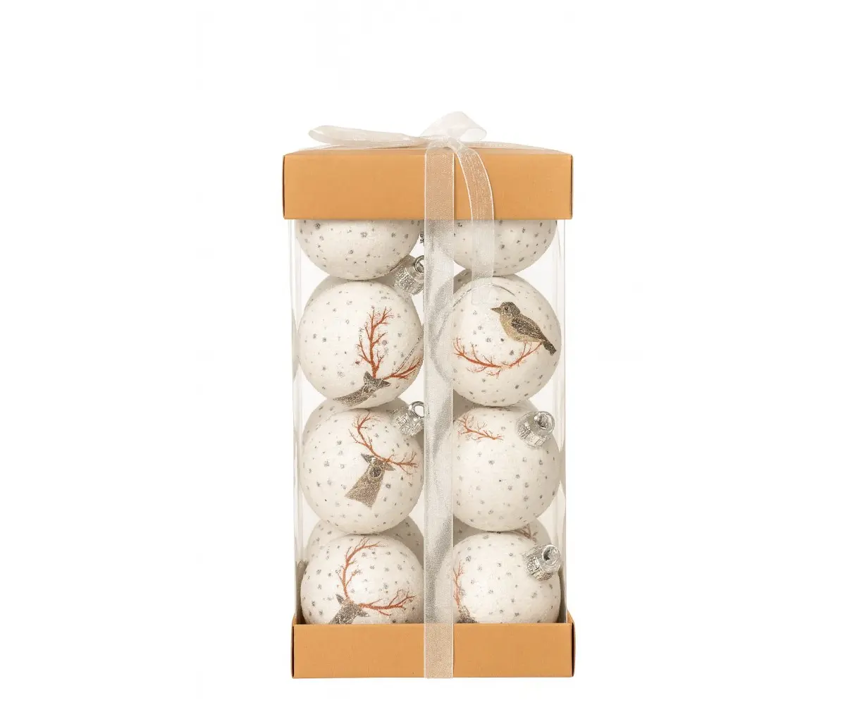 ეს ელეგანტური საახალწლო ბურთების ნაკრები იდეალური არჩევანია ნაძვის ხის სტილურად და ერთიანი თემატიკით გასაფორმებლად. 12 სმ ზომის კლასიკური ფორმის დეკორატიული ბურთები წარმოდგენილია სხვადასხვა ტექსტურითა და მბზინავი ეფექტით, რაც კომპოზიციას სიღრმეს, ბრწყინვალებას და დღესასწაულის ხალისს მატებს.