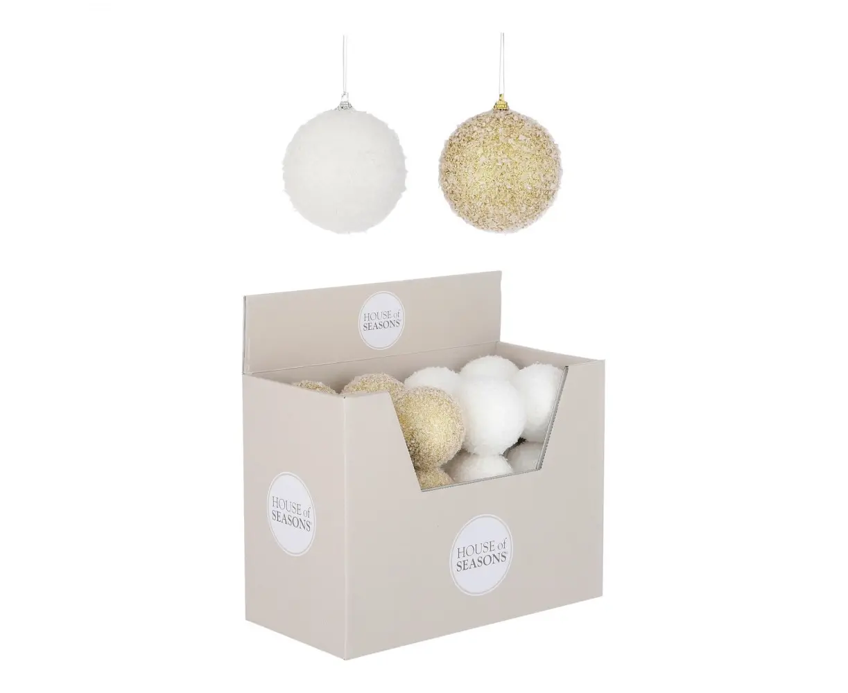 საახალწლო სათამაშო ბურთი თეთრი/ოქროსფერი 8 სმ