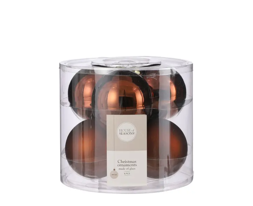 საახალწლო სათამაშო ბურთი მინის ყავისფერი 8სმ-6ც