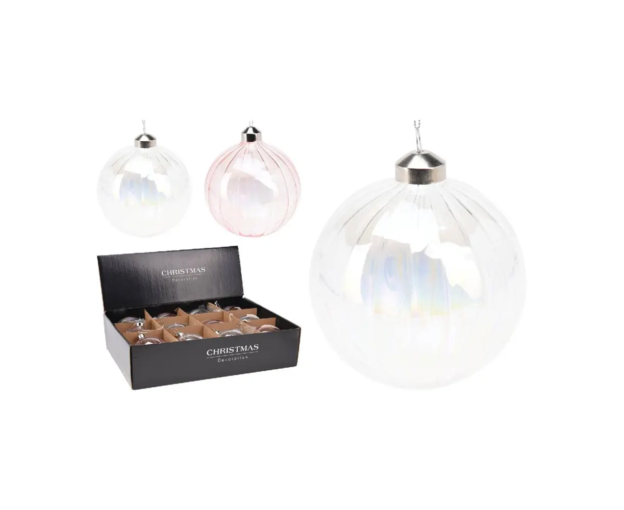 გამჭვირვალე შუშის ბურთი - მრავალმხრივი საახალწლო დეკორაცია. მისი მარტივი დიზაინის მეშვეობით, შეგიძლიათ შეუთავსოთ სხვა საახალწლო დეკორაციებს და შექმნათ უნიკალური ატმოსფერო. პროდუქტი ხელმისაწვდომია ორ განსხვავებულ ფერში.