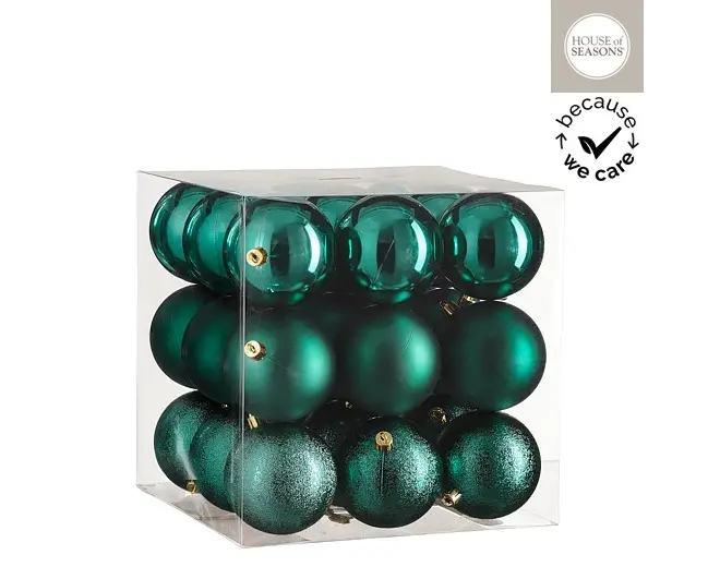 შექმენით საახალწლო ზღაპრული ატმოსფერო თქვენს სახლში ჩვენი 27 ელეგანტური მწვანე საახალწლო ბურთის ნაკრებით. დამზადებულია პლასტმასისგან. გლუვი ზედაპირი და მდიდარი ფერი თქვენს ნაძვის ხეს ელეგანტურ და სადღესასწაულო იერსახეს შეუქმნის.