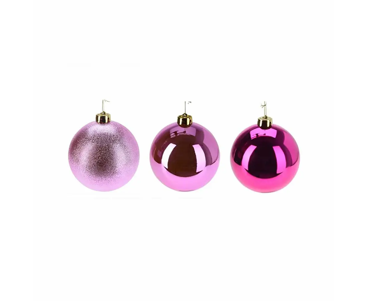 გსურთ თქვენი ნაძვის ხე უფრო მბზინავი გახადოთ? ეს ელეგანტური ბურთი თქვენს ნაძვის ხეს დამატებით ბრწყინვალებას შემატებს. იდეალურია სადღესასწაულო განწყობის შესაქმნელად. ნაკრები შედგება სამი სხვადასხვა ვარდისფერი ტონის მინის ბურთისგან.