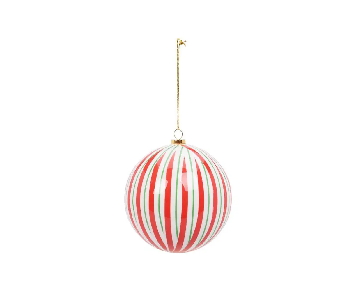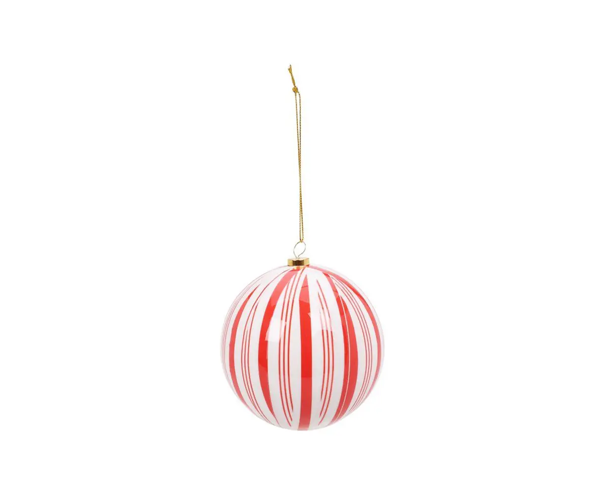 შექმენით მყუდრო საახალწლო ატმოსფერო ამ მომხიბვლელი საახალწლო სათამაშოს მეშვეობით. კლასიკური სადღესასწაულო ფერები და ზოლიანი დიზაინი დაამატებს სითბოსა და კომფორტს თქვენს სახლს. პროდუქტი ხელმისაწვდომია ოთხ სხვადასხვა დიზაინში.