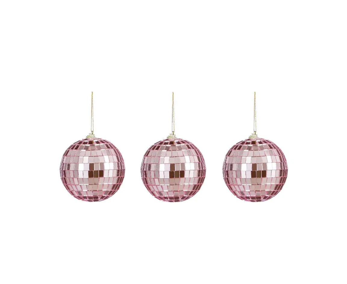 საახალწლო სათამაშო სარკისებრი ბურთი ვარდისფერი 8 სმ 3 ც