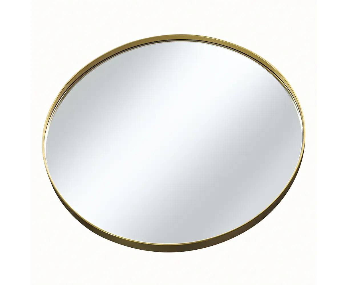 მრგვალი სარკე ელეგანტური ოქროსფერი ლითონის ჩარჩოთი, რომელიც გამოირჩევა გამძლეობითა და დახვეწილი დიზაინით. მისი 60 სმ დიამეტრი იდეალურია როგორც აბაზანისთვის, ასევე მისაღებისა და საძინებლის ინტერიერის გასალამაზებლად. მაღალი ხარისხის მინა უზრუნველყოფს მკვეთრ ანარეკლს, ხოლო ლითონის ჩარჩო სარკეს მატებს მდიდრულ და თანამედროვე იერს.