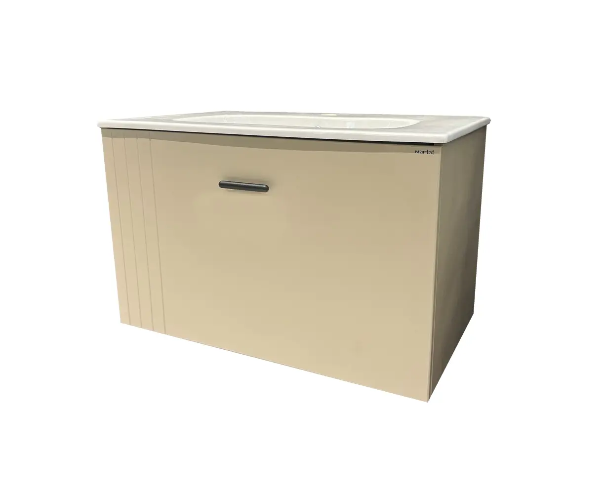 Martat Dafhne 80 არის დასაკიდი აბაზანის ავეჯი ხელსაბანით, მოდური კრემისფერი საფარით. დამზადებულია გამძლე MDF-ისგან, მისი ზომებია 520x800x450 მმ, რაც უზრუნველყოფს თქვენი აბაზანის შესანახად გლუვ და პრაქტიკულ გადაწყვეტას.