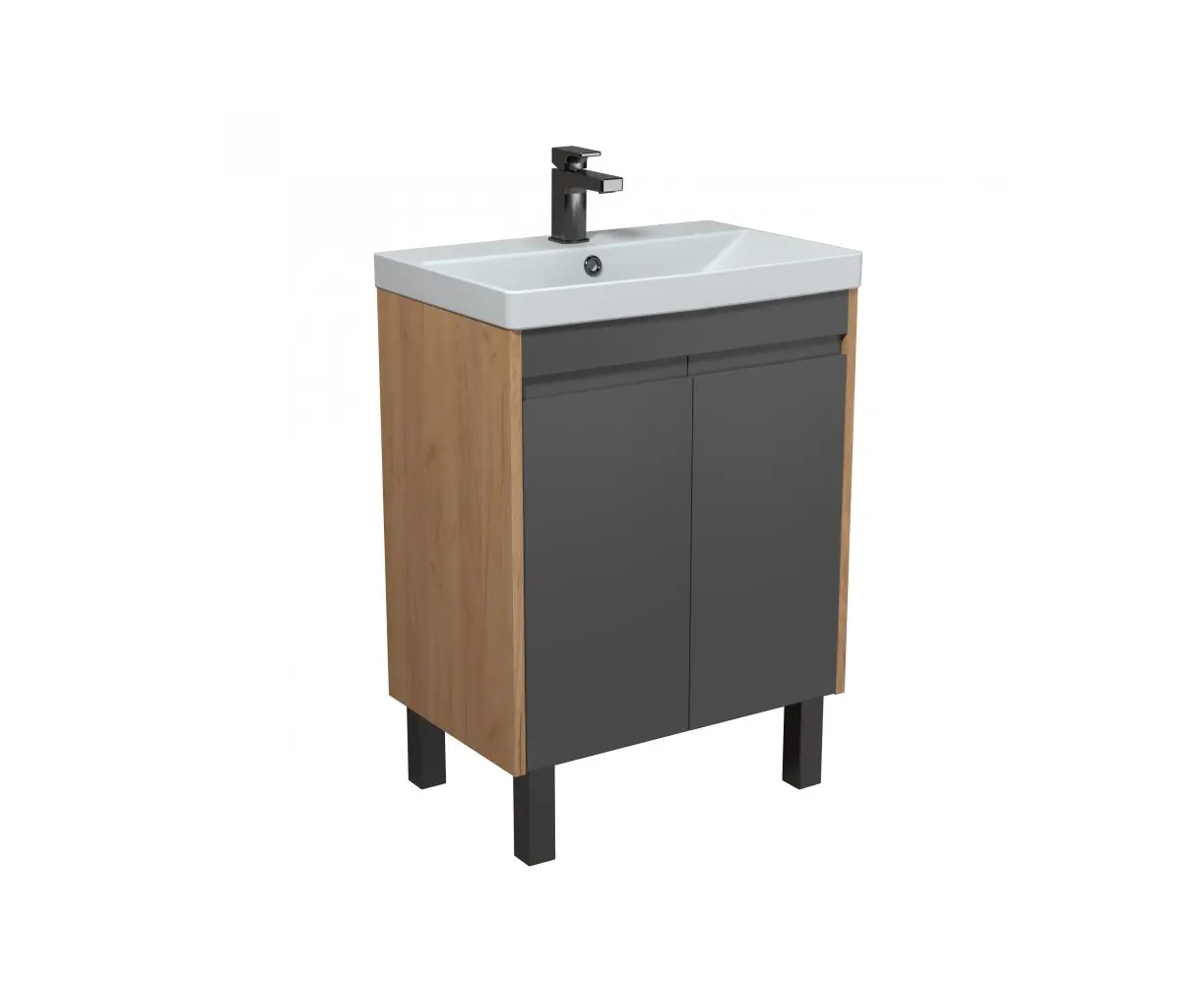 აბაზანის ტუმბო ხელსაბნით OLIVE 60-U Wood/Grey Sempre 61 სმ