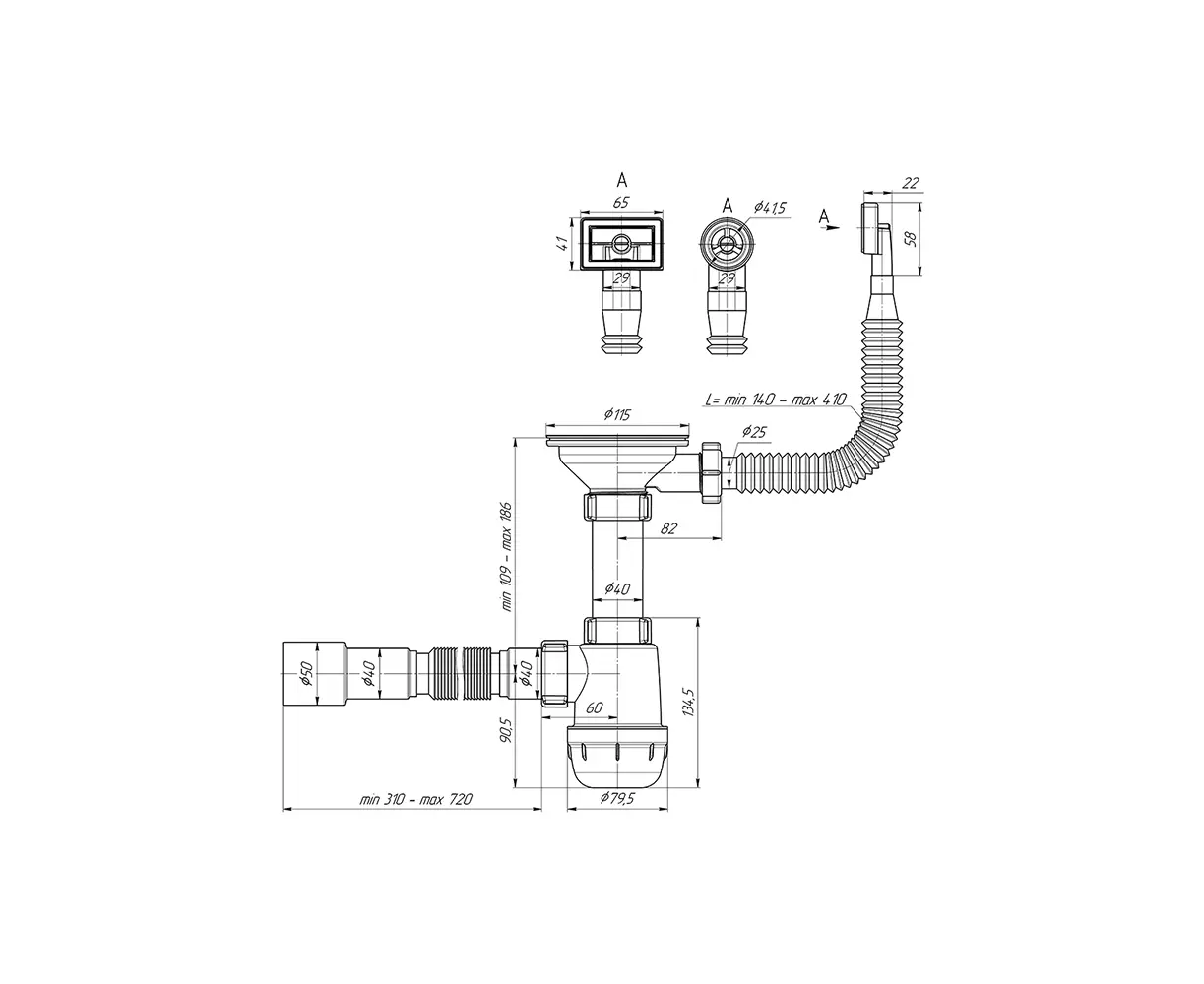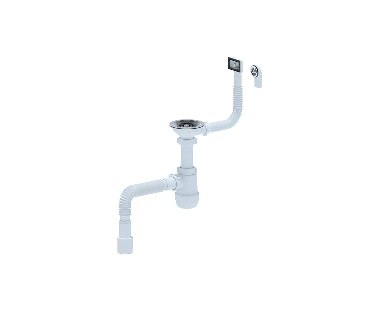 სამზარეულოს ნიჟარის სიფონი გადასხმით და დრეკადი მილით ANI PLAST A0145EUDIY 1/2" 40х40/50მმ