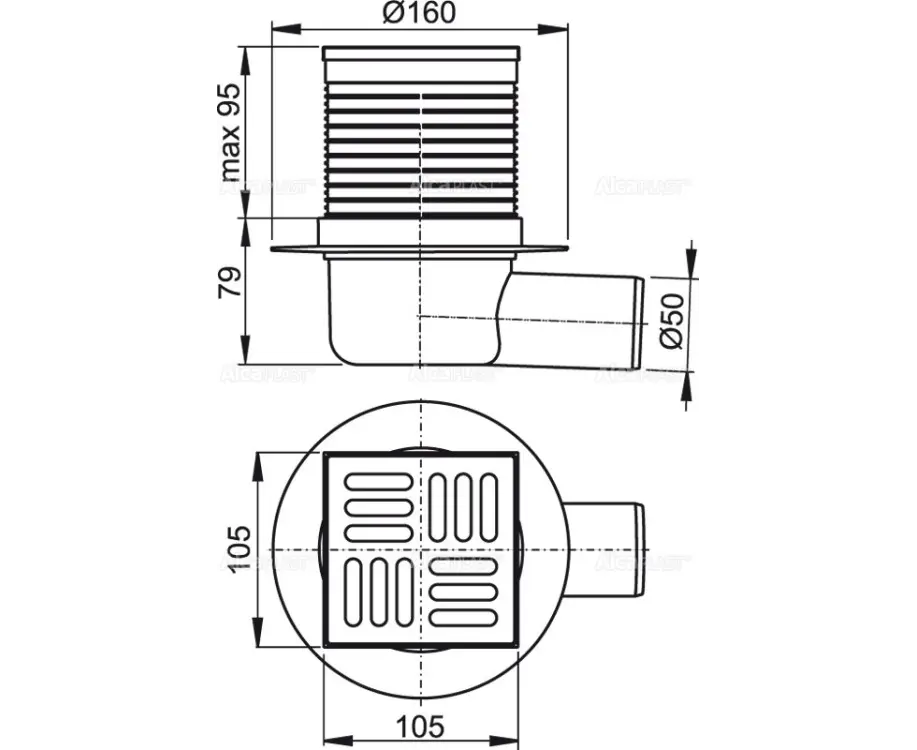 ტრაპი Alcadrain APV31 105x105/50 მმ