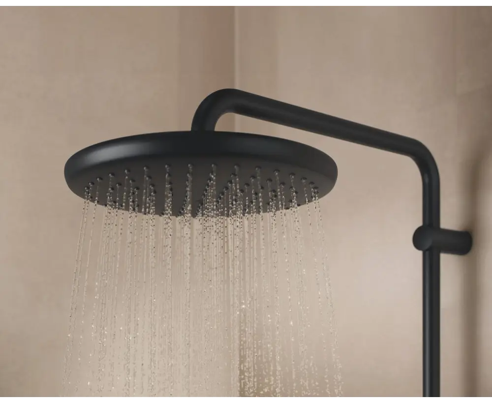 საშხაპე სისტემა Grohe Vitalio Start System 250 Black თანამედროვე დიზაინისა და უახლესი ტექნოლოგიების იდეალური შერწყმაა. მქრქალი შავი ფერი ინტერიერს სძენს ელეგანტურობასა და დახვეწილ სტილს. დიდი Ø250 მმ ზედა შხაპის თავი ქმნის სასიამოვნო და თანაბარ წყლის ნაკადს, ხოლო Ø110 მმ ხელის შხაპი უზრუნველყოფს კომფორტს ყოველდღიური გამოყენებისას. 7.0 ლ/წთ წყლის ნაკადის სიჩქარე უზრუნველყოფს როგორც ეფექტურ, ასევე ეკონომიურ მოხმარებას. თერმოსტატის საშუალებით წყლის ტემპერატურა ყოველთვის სტაბილურია, რაც უსაფრთხოებასა და კომფორტს კიდევ უფრო ზრდის.