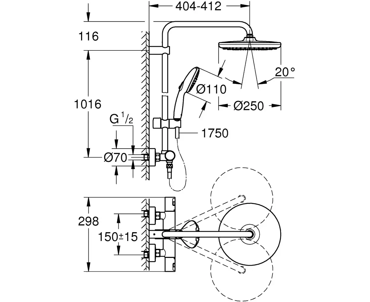 • თავის შხაპის დიამეტრი: Ø250 მმ