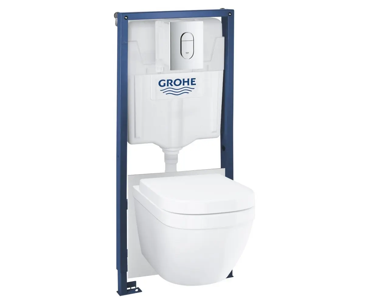 ეს სრული GROHE Solido კედელზე დასამონტაჟებელი უნიტაზის ნაკრები აერთიანებს ელეგანტურ დიზაინს და თანამედროვე ტექნოლოგიებს. კომპლექტში შედის Euro Ceramic უნიტაზი და Arena Cosmopolitan ქრომირებული ჩამრეცხი პანელი. მონტაჟი მარტივია GROHE QuickFix სისტემის წყალობით და შესაფერისია როგორც მყარ, ისე კარკასულ კედელზე. კონსტრუქცია გათვლილია 400 კგ-მდე დატვირთვაზე. უნიტაზის რგოლის გარეშე დიზაინი უზრუნველყოფს ჰიგიენურობას, ხოლო Triple Vortex სისტემა უზრუნველყოფს ძლიერი და ხმაურის გარეშე ჩამორეცხვას. რბილი დახურვის მექანიზმი და EcoJoy ორმაგი ჩამორეცხვა ამცირებს წყლის ხარჯს 50%-მდე.