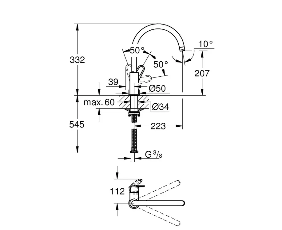 მინიმალისტური თანამედროვე დიზაინი, რომელიც უზრუნველყოფს სამზარეულოს კომფორტს - GROHE START FLOW
