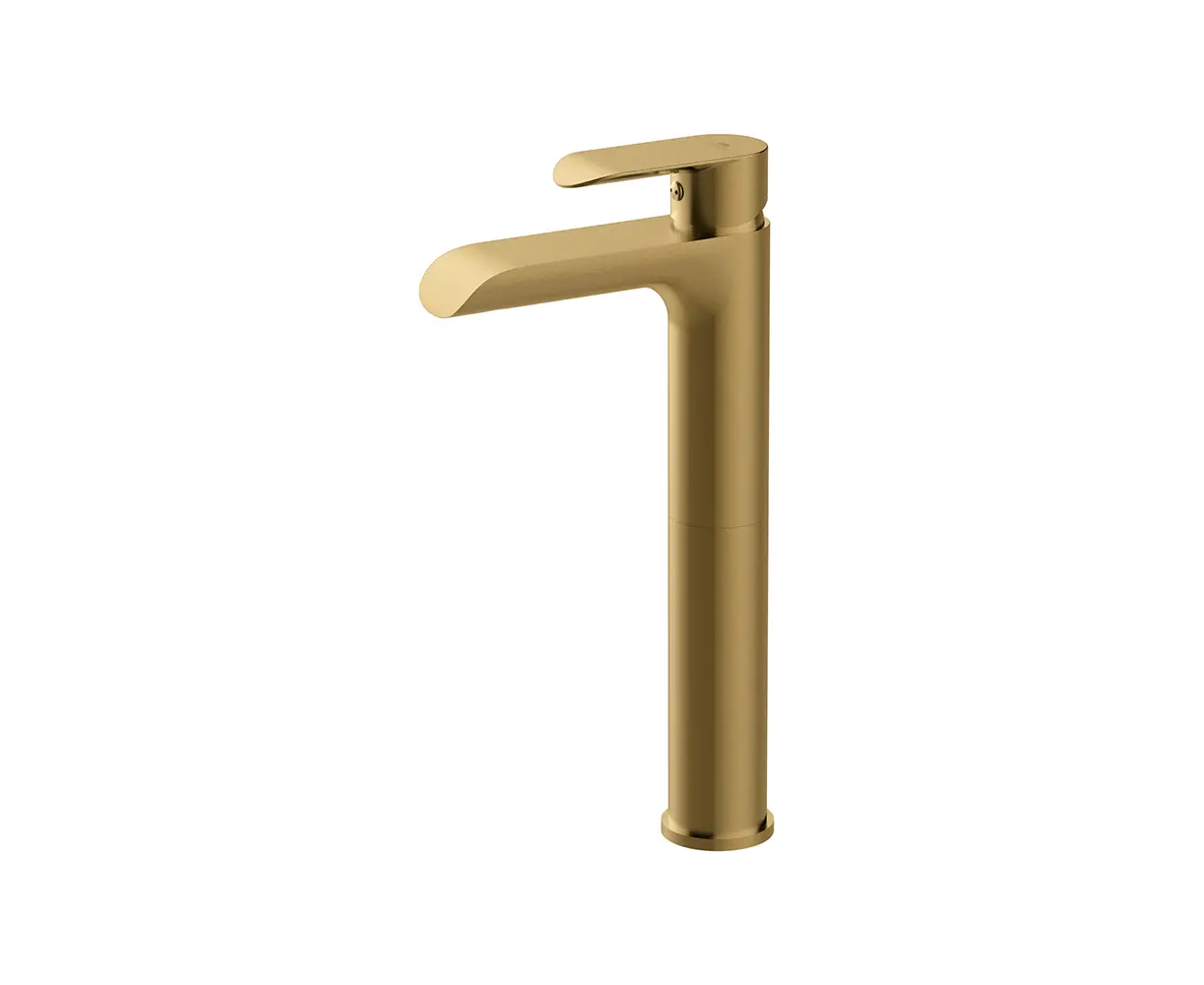 მაღალი შემრევი ხელსაბანის Rubineta ULTRA-18/D (N) (GD) ოქროსფერი სძენს ელეგანტურობას ნებისმიერი სტილის აბაზანას. სიმაღლე 165 მმ, სიღრმე 160 მმ, Ø43 მმ კორპუსი და 12° ± 6° ძუის კუთხე უზრუნველყოფს კომფორტულ გამოყენებას. თავსებადია 40 მმ სისქის ზედაპირებთან და უკავშირდება G1/2" ზომის მილით.